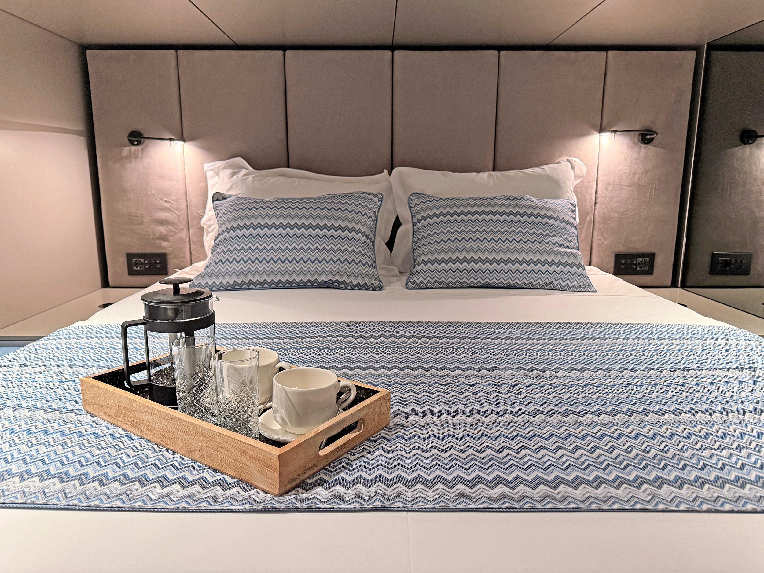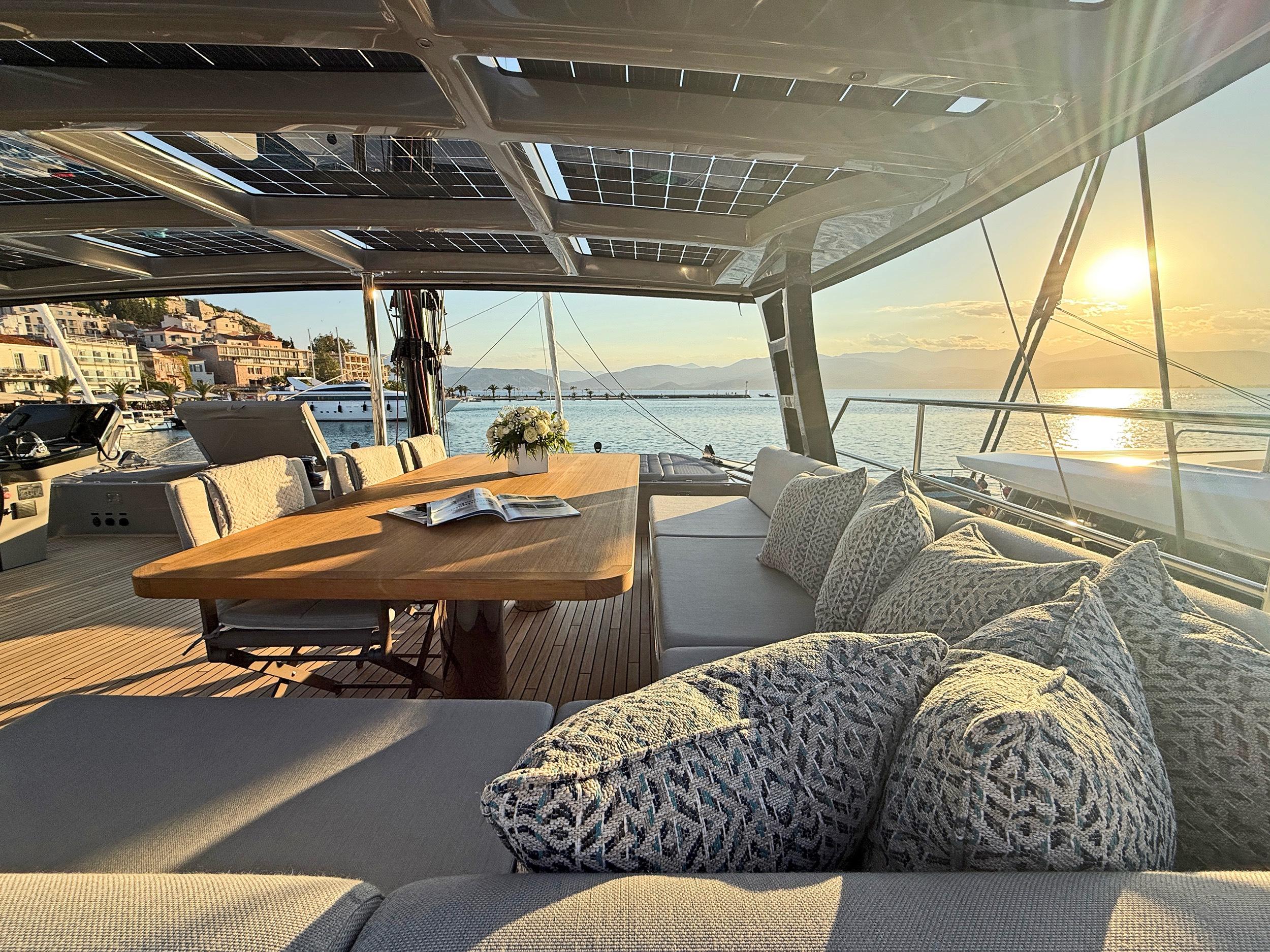 Delivered in 2025, SERENITY is a Sunreef 60 sailing catamaran designed for luxury with sustainability at its core. She accommodates up to eight guests in four elegant ensuite cabins and features a galley-up layout, expansive living spaces, and ultra-silent operation. Solar panels, a large hydraulic swim platform, and refined outdoor areas make her ideal for relaxed, eco-conscious cruising while exploring the Greek Islands in comfort and style.