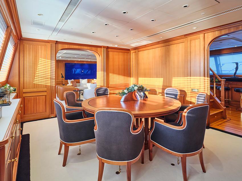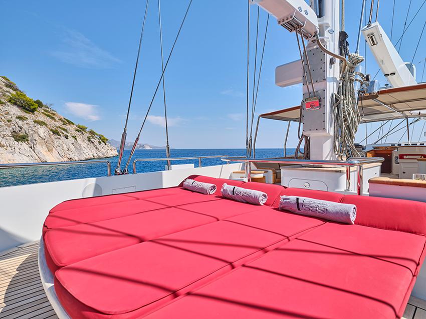 Built by Perini Navi and extensively refitted in 2021–2022, ALMYRA II is a 50m motorsailer combining classic ketch elegance with cutting-edge sailing performance. She welcomes up to twelve guests in five flexible ensuite cabins, including a spacious master suite and a convertible office or lounge. A retractable keel allows access to shallow bays, while vast deck spaces and a waterside beach club enhance life on board. Carbon racing sails, sustainable practices, and a passionate crew of ten deliver a refined, high-performance charter experience.