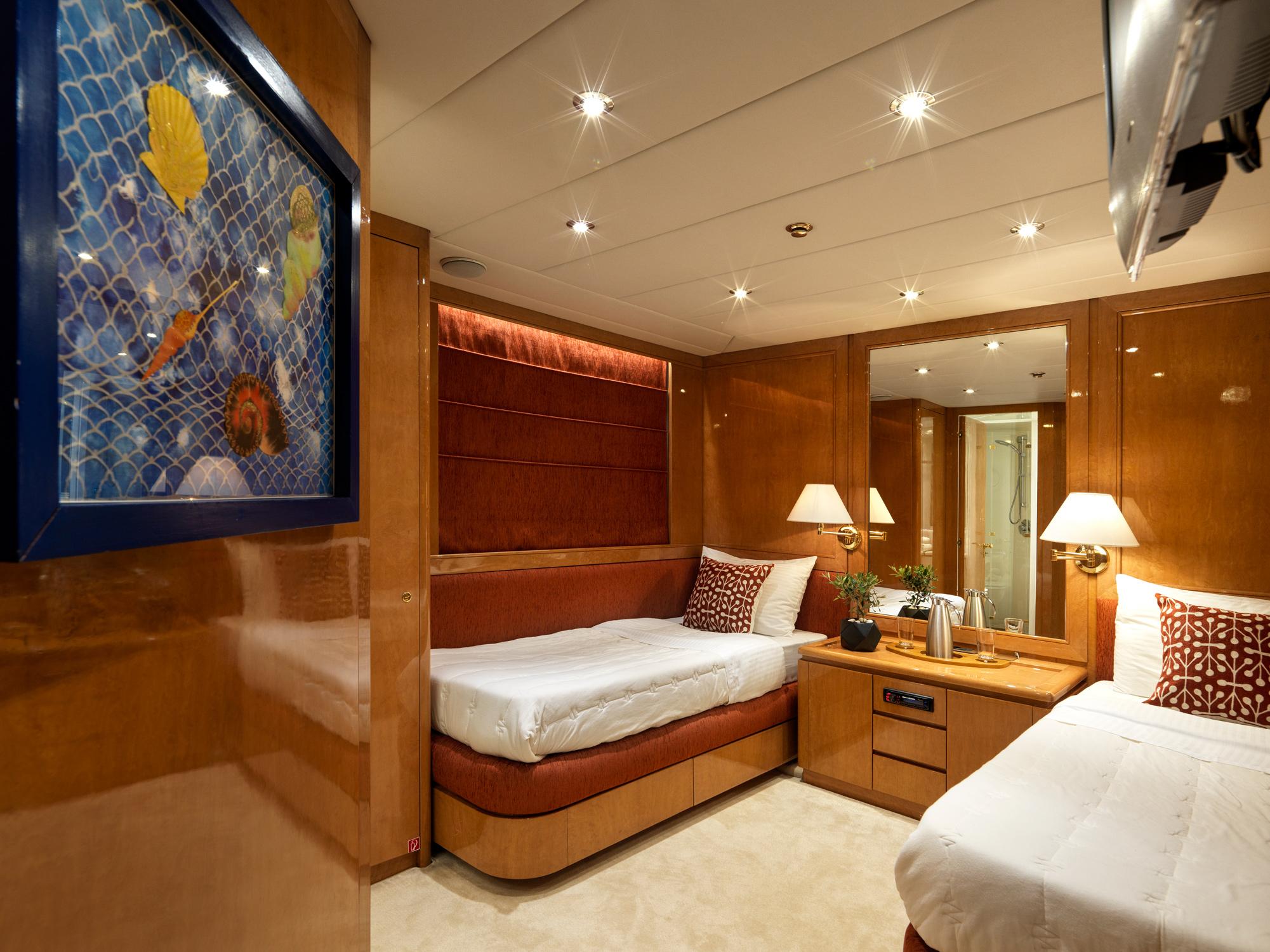 - Five-cabin layout accommodating up to ten guests