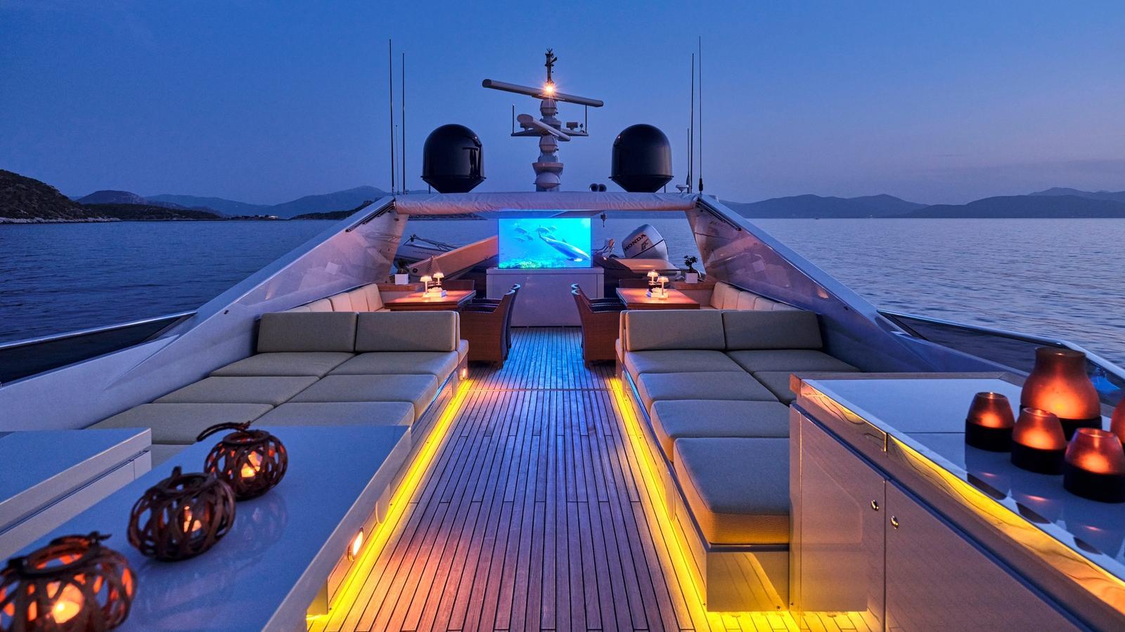 Built by Cantieri di Pisa and refitted in 2024, KINTARO is a 38.1m motor yacht offering exceptional volume and versatility for larger groups. She accommodates up to twelve guests in a rare six-cabin layout, including a luxurious master suite and multiple VIP cabins. Expansive outdoor areas include a generous sundeck with BBQ, shaded dining, and an outdoor cinema, while the beach club is fully equipped with water toys. Meticulously maintained and operated by a long-standing professional crew of seven, KINTARO delivers a refined and entertaining charter experience.