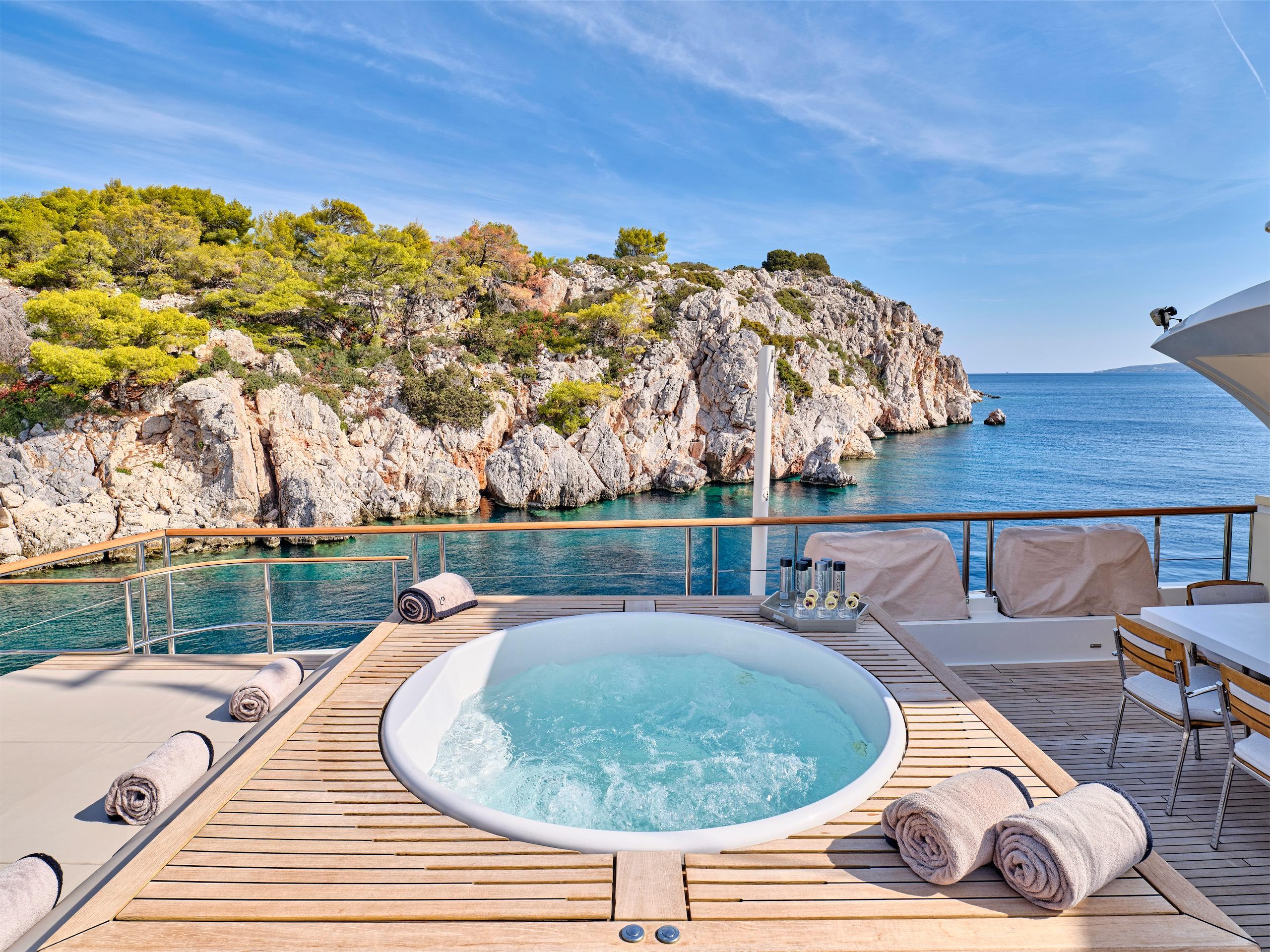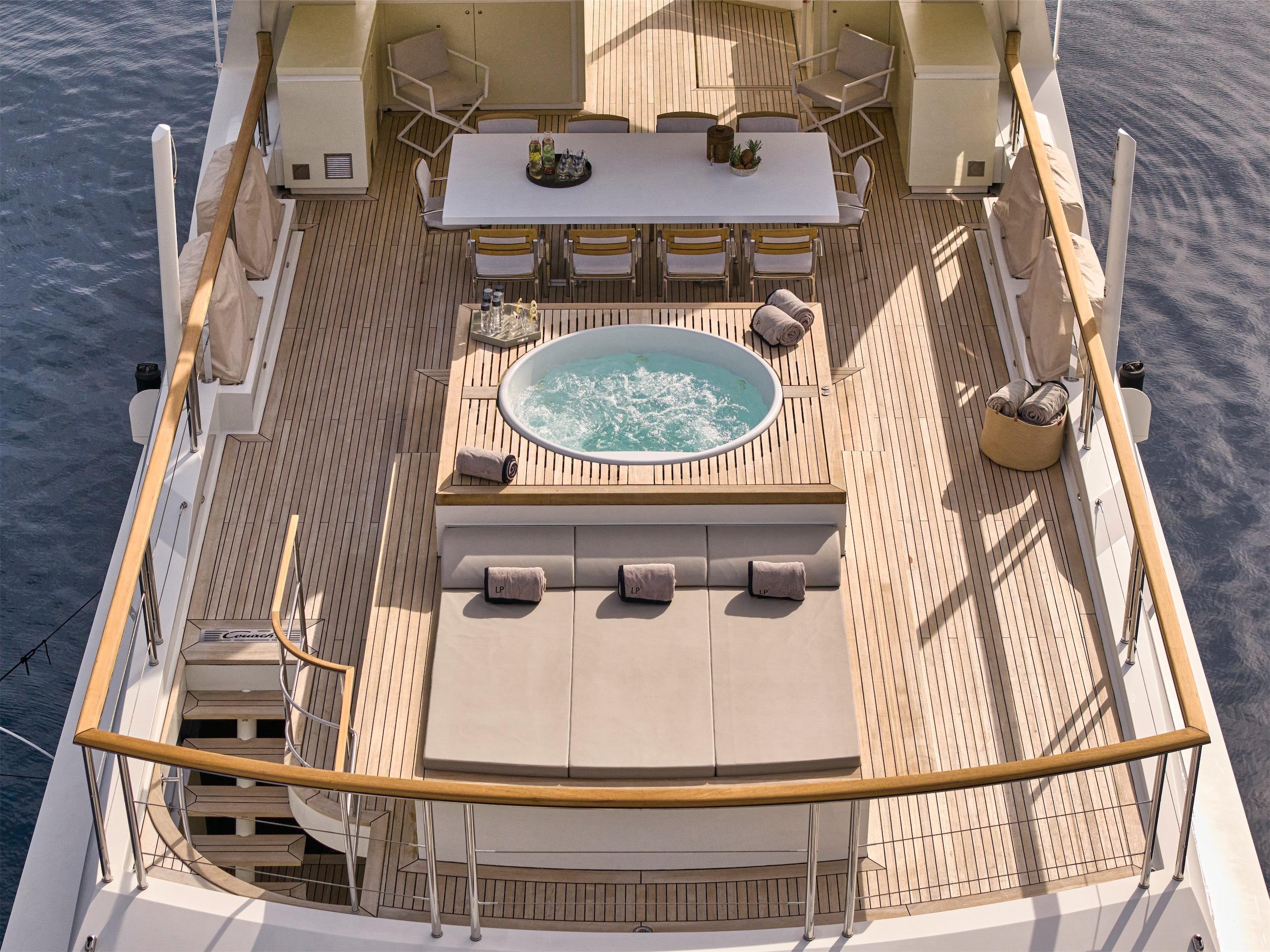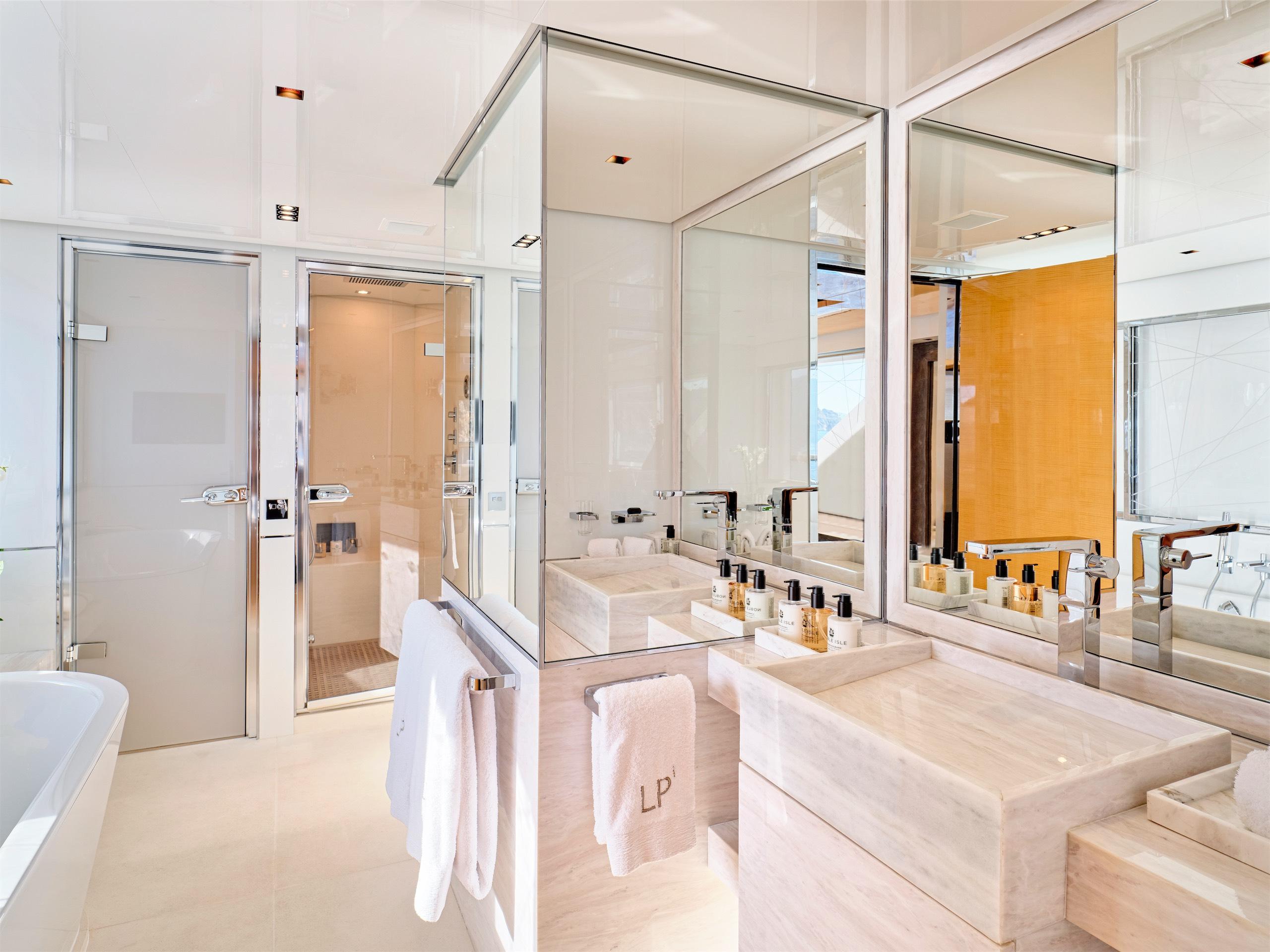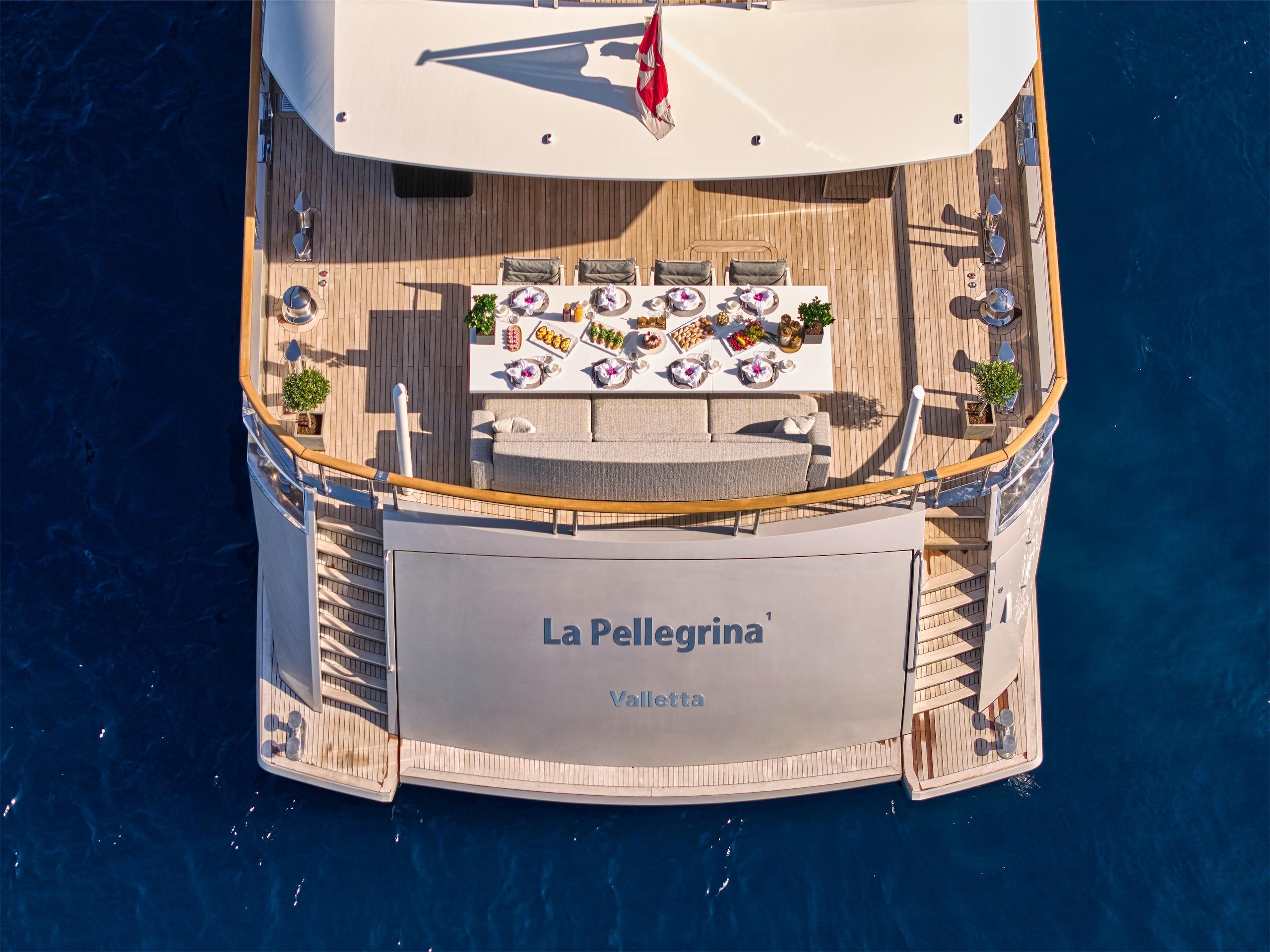 Delivered by Couach in 2012 and extensively refitted in 2024, LA PELLEGRINA 1 is a 50m flagship superyacht combining refined elegance with modern performance. She accommodates up to twelve guests in six luxurious cabins, including a bridge-deck master suite with private terrace and a panoramic main-deck VIP. Light-filled interiors feature full-height windows, while expansive exterior decks offer a jacuzzi, dining areas, and seamless sea access. Stabilizers at anchor and underway, a world-class toy collection, and an exceptional crew of eleven ensure a truly elevated charter experience.