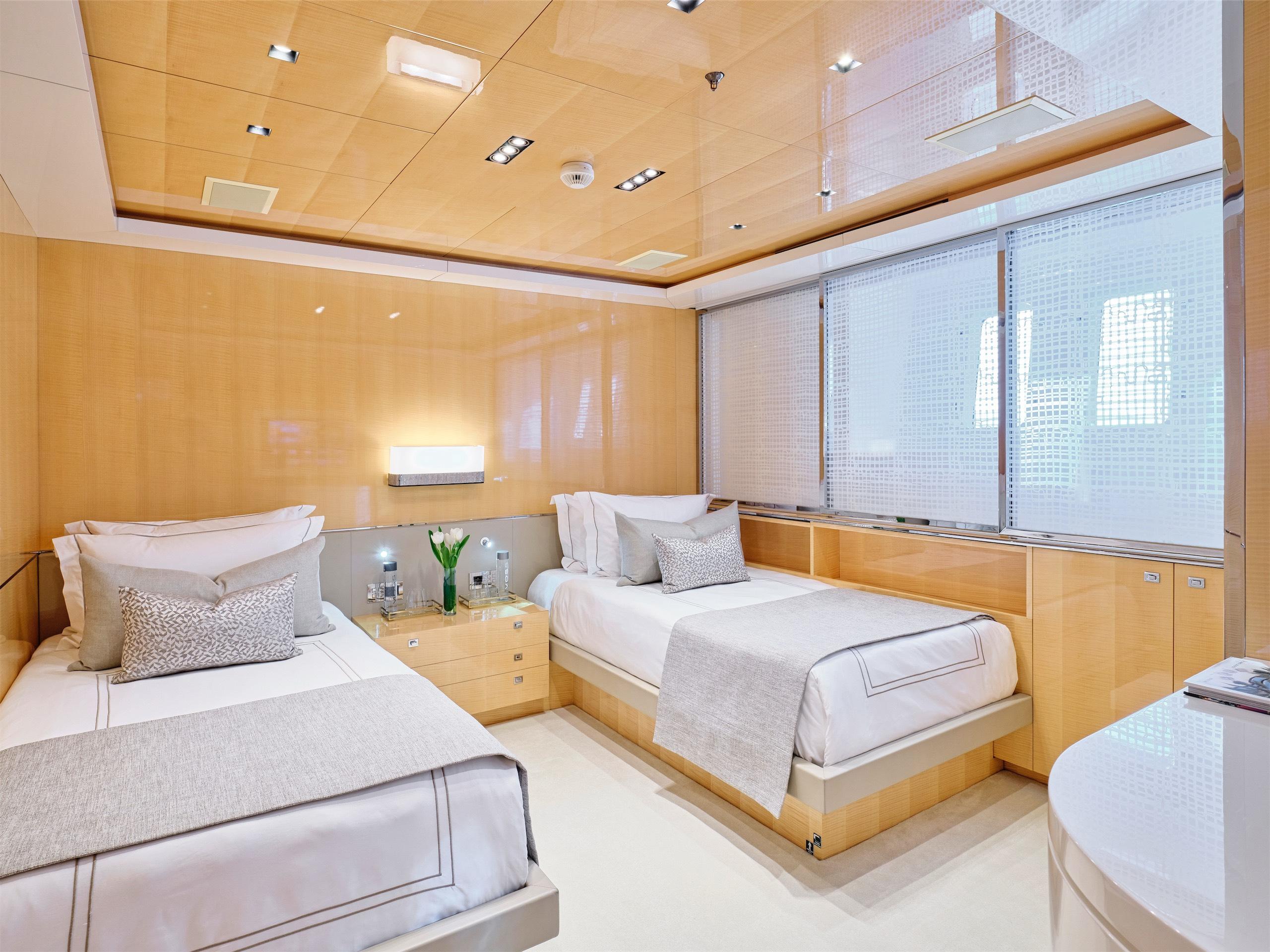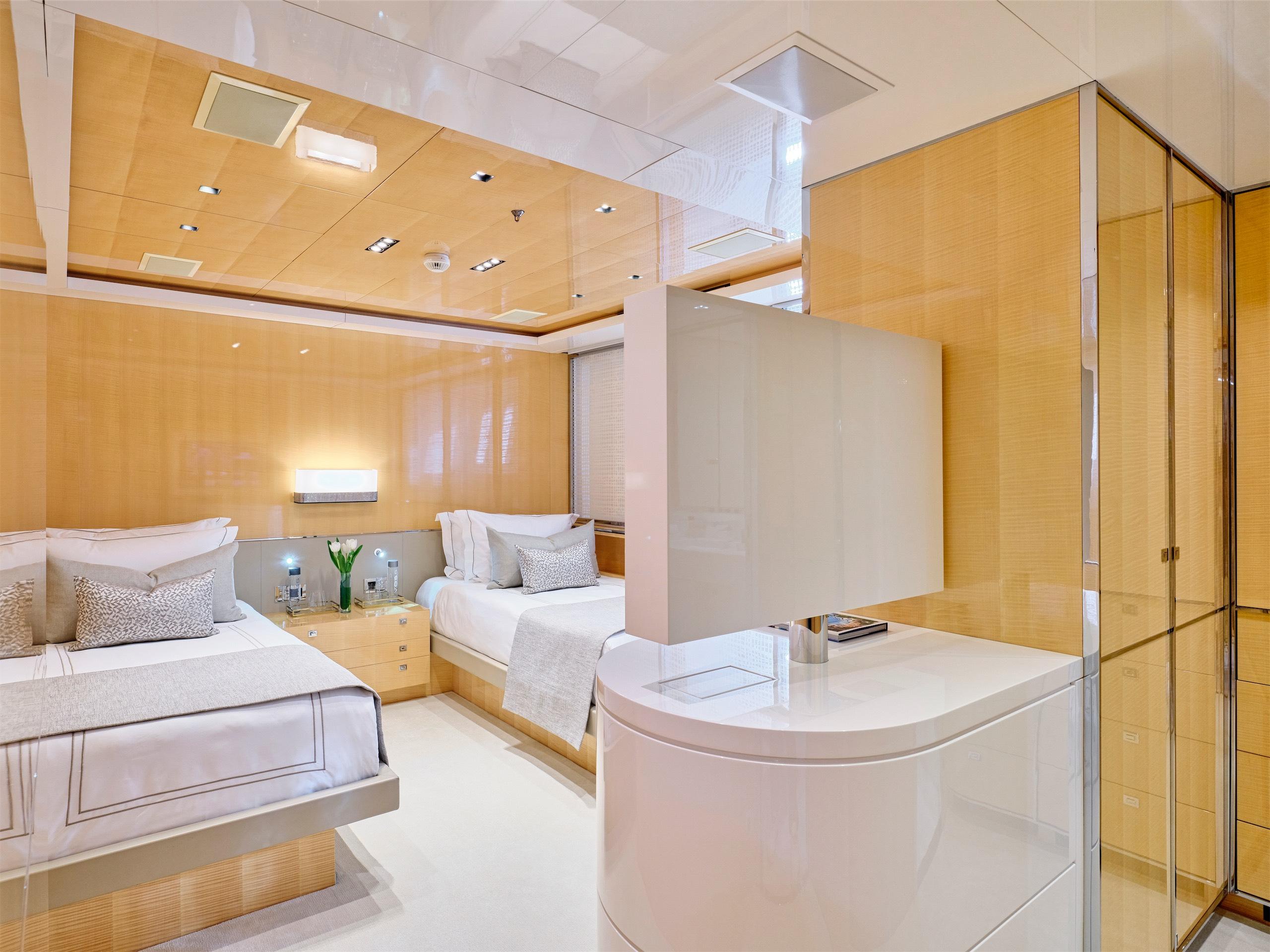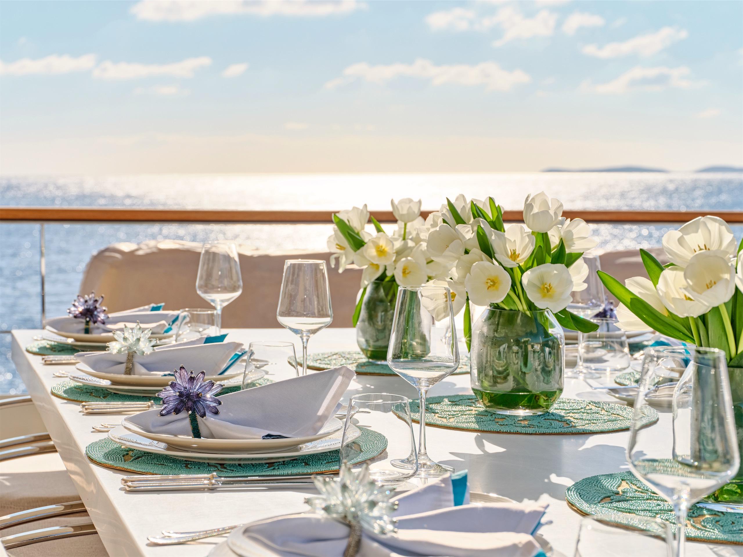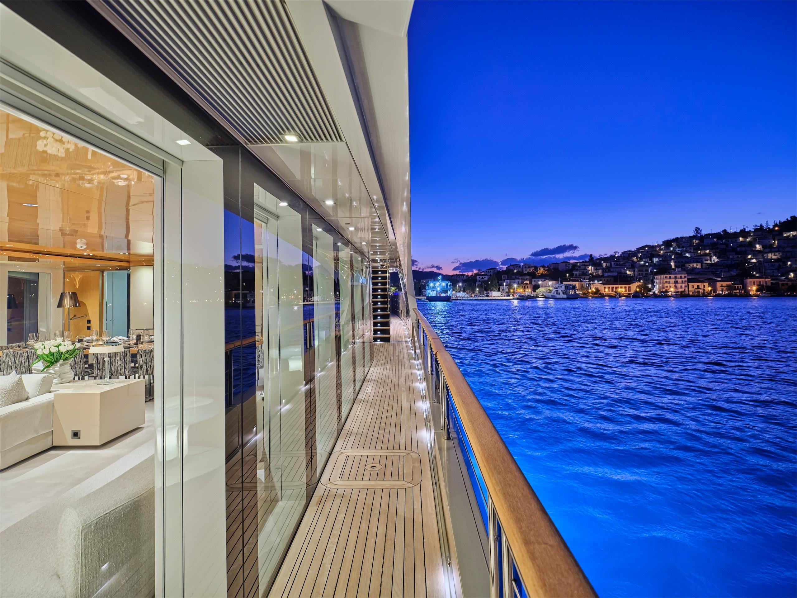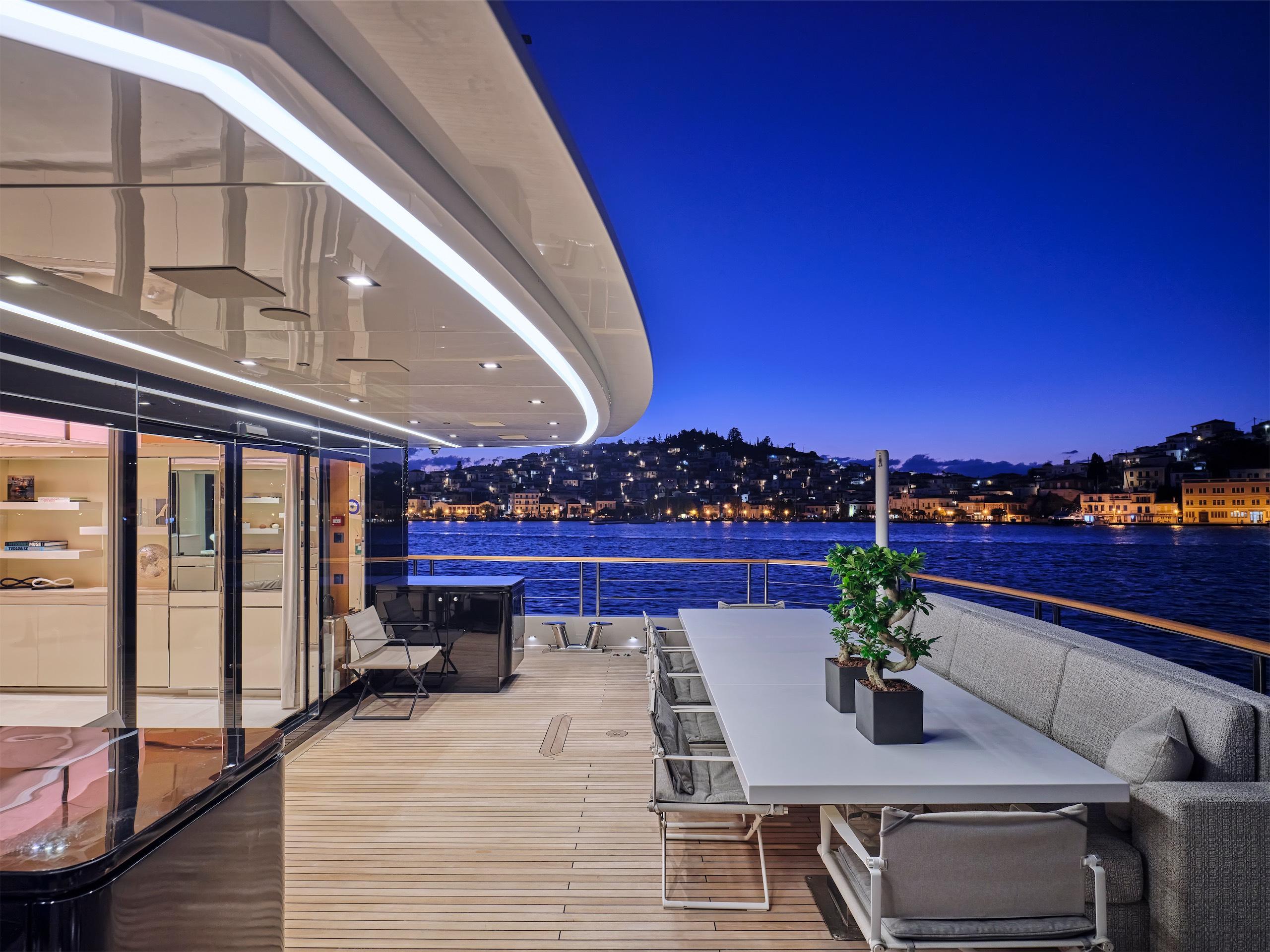 Delivered by Couach in 2012 and extensively refitted in 2024, LA PELLEGRINA 1 is a 50m flagship superyacht combining refined elegance with modern performance. She accommodates up to twelve guests in six luxurious cabins, including a bridge-deck master suite with private terrace and a panoramic main-deck VIP. Light-filled interiors feature full-height windows, while expansive exterior decks offer a jacuzzi, dining areas, and seamless sea access. Stabilizers at anchor and underway, a world-class toy collection, and an exceptional crew of eleven ensure a truly elevated charter experience.