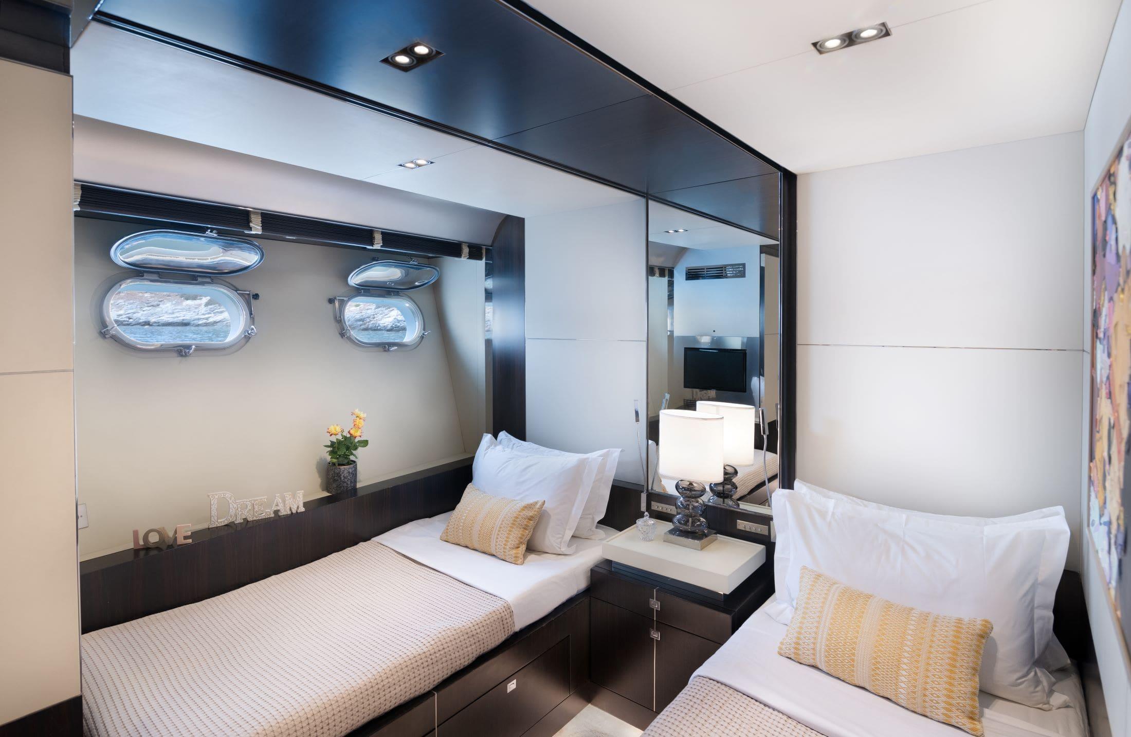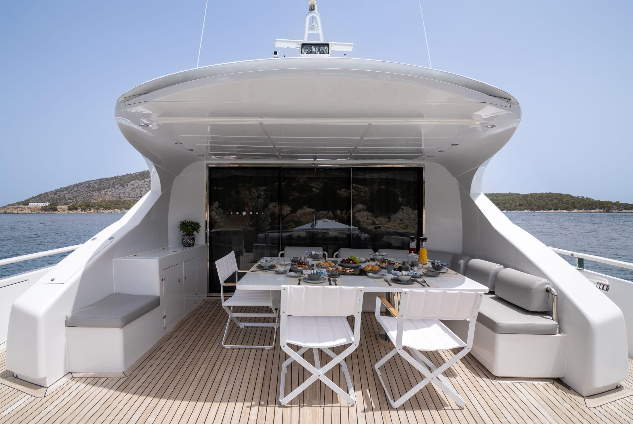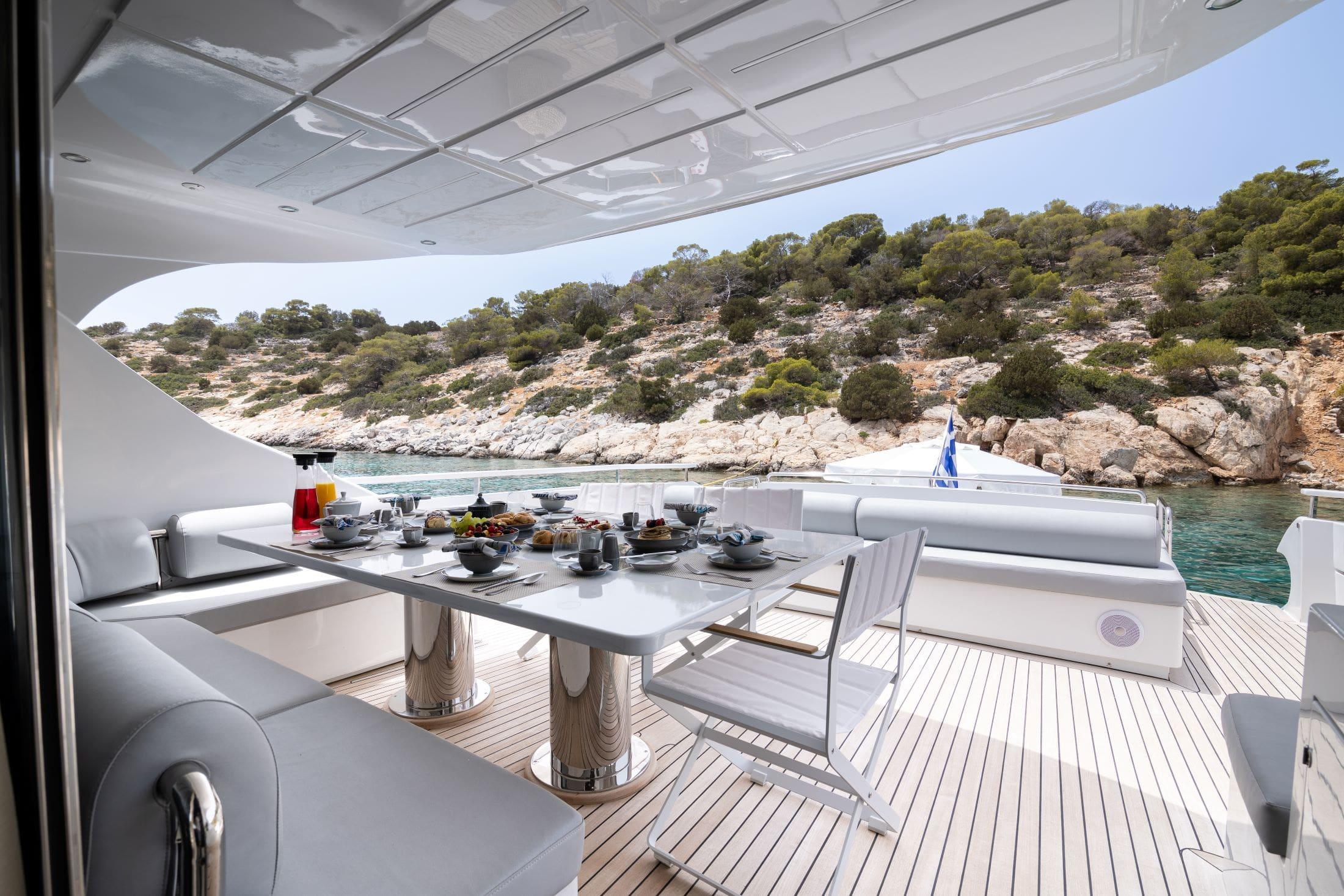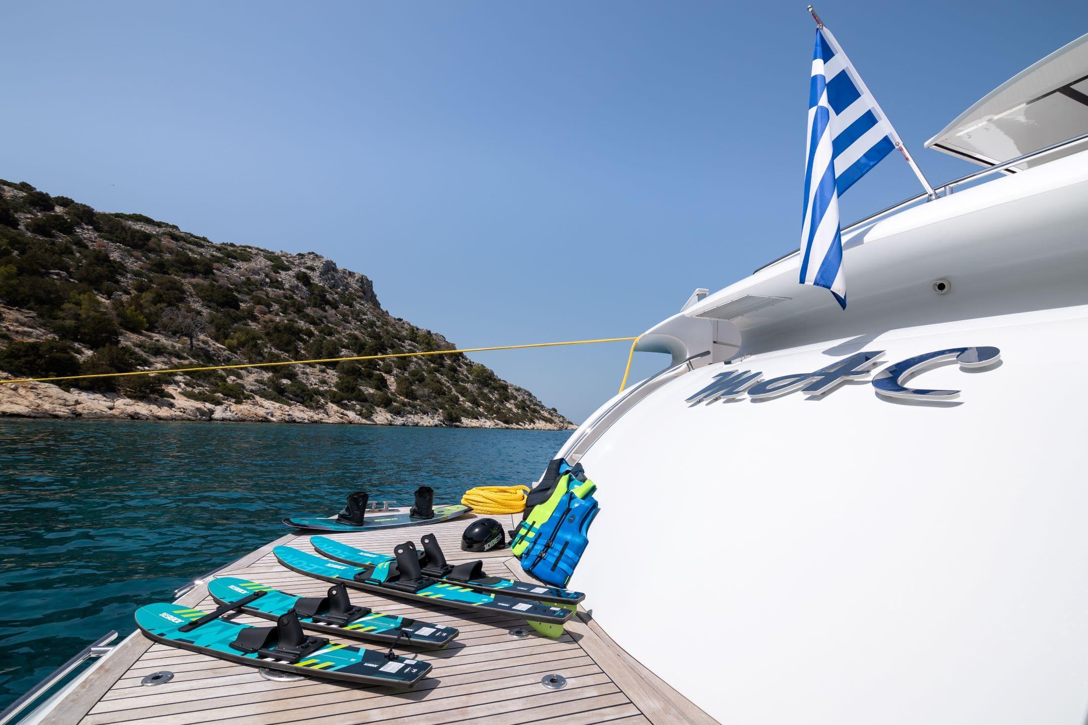 MAC is a 30.78m Italcraft Maxi Drago 105 motor yacht designed for guests who value speed, style, and comfort. Refitted in 2023, she features elegant contemporary interiors with fine materials, generous natural light, and well-planned social spaces. Accommodating up to nine guests in four ensuite cabins, MAC offers expansive outdoor areas, a large swim platform, and thrilling performance for fast-paced island hopping, all supported by a professional and attentive crew of five.
