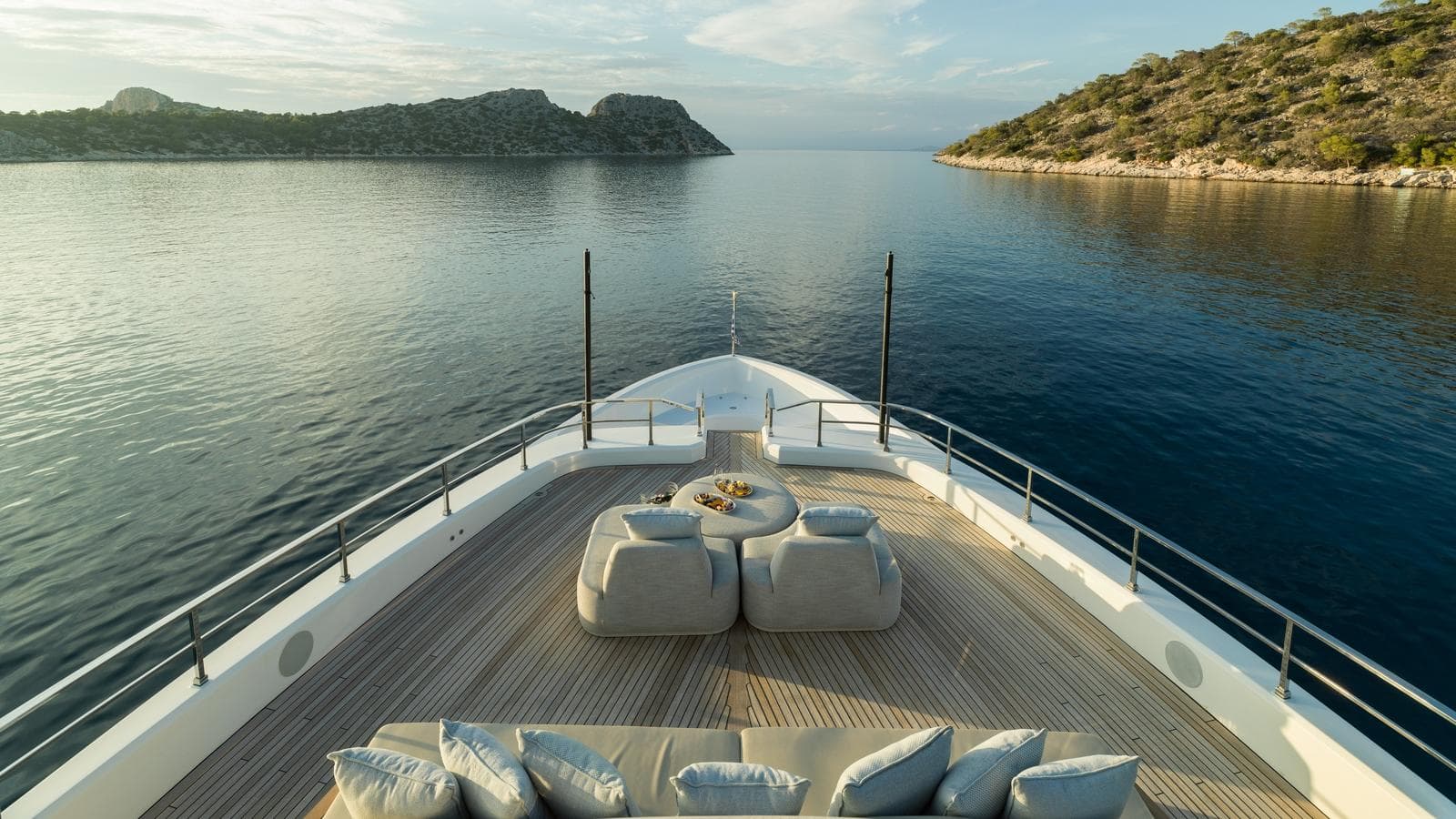 - Main-deck master suite with panoramic views